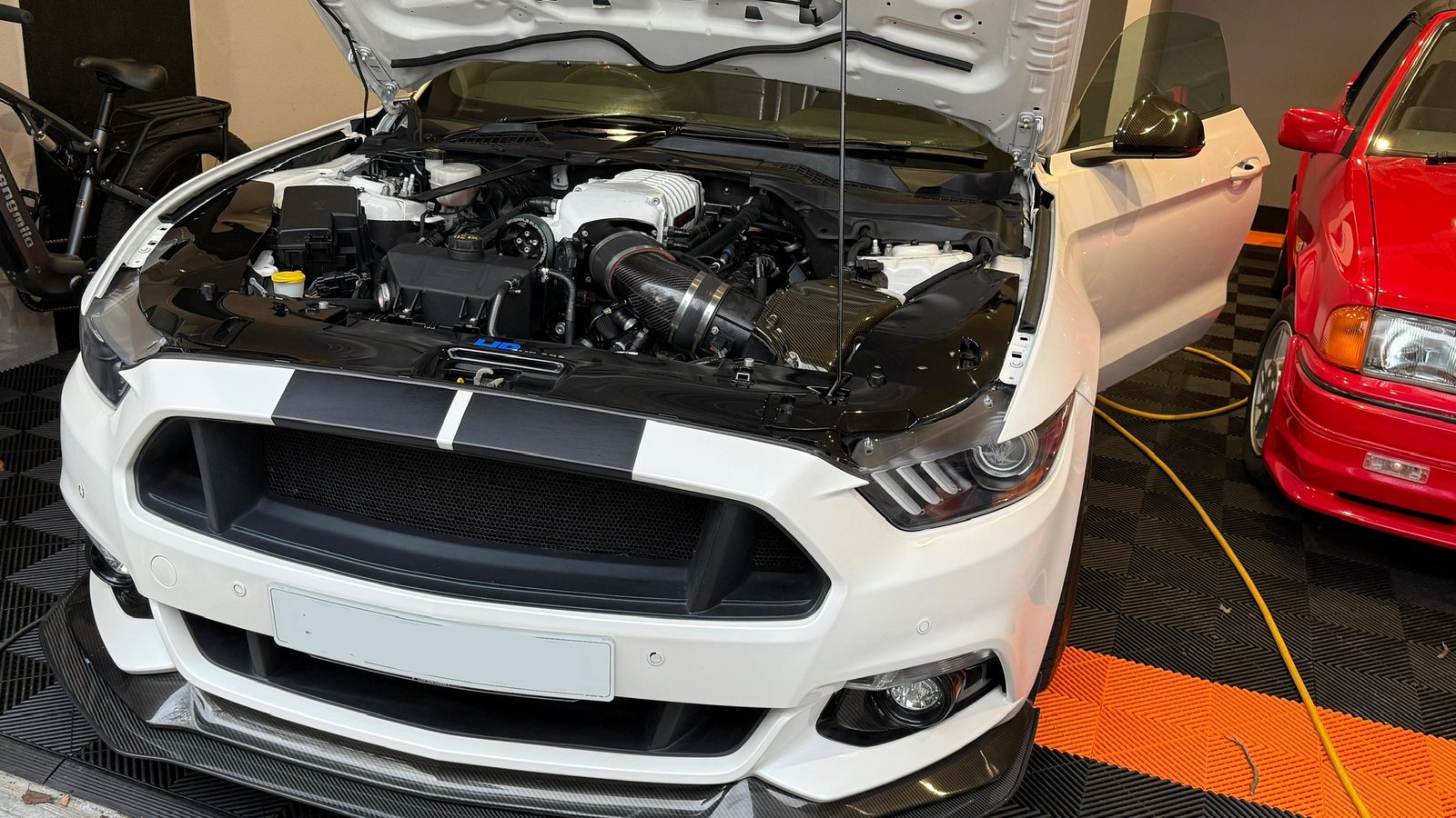 Ford Mustang underwent full paint correction to restore depth and gloss, then sealed for lasting protection. The interior was thoroughly cleaned, with leather treated and protected for durability. An engine bay detail completed the service, leaving this iconic muscle car pristine inside, out, and under the hood.