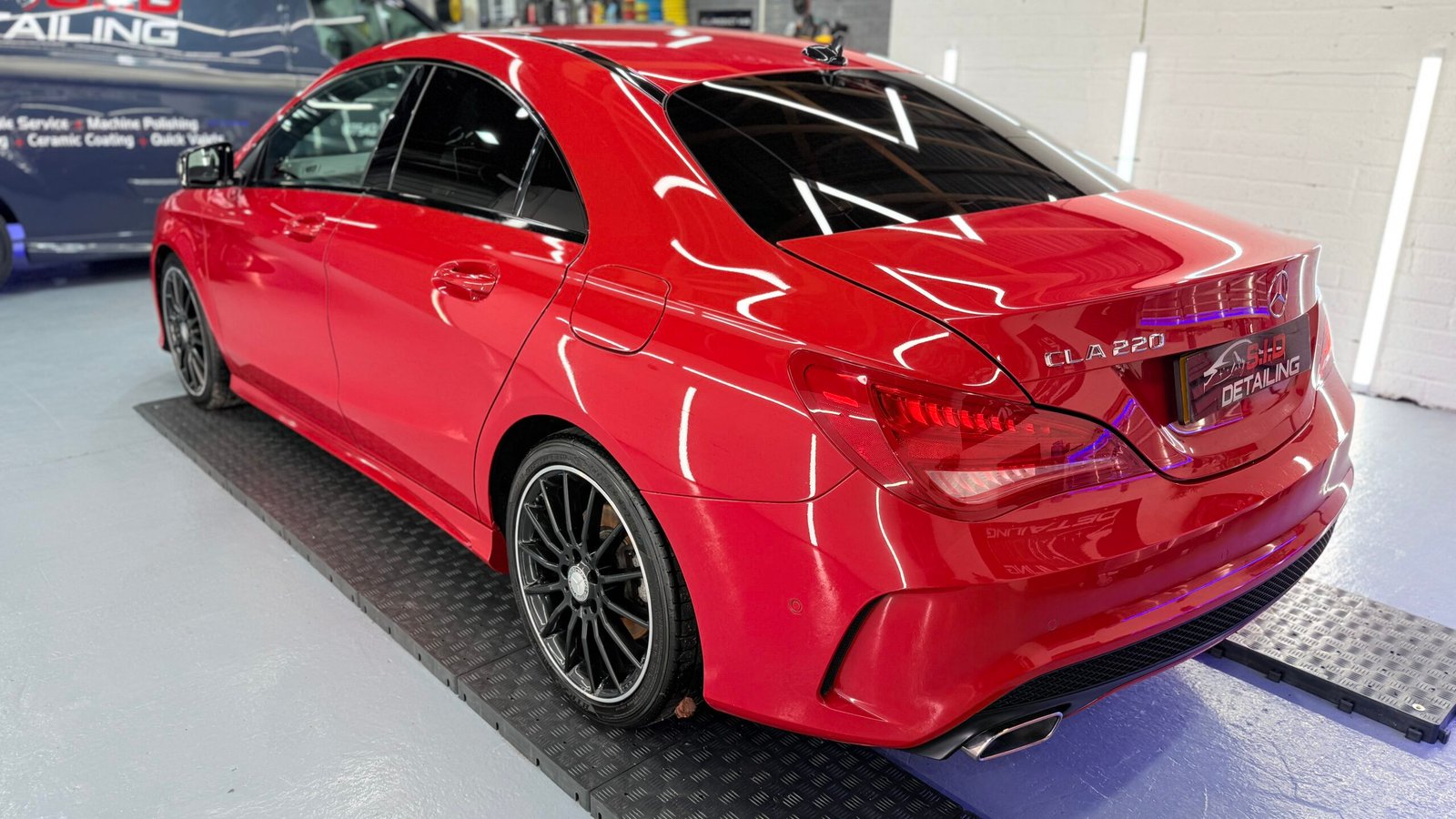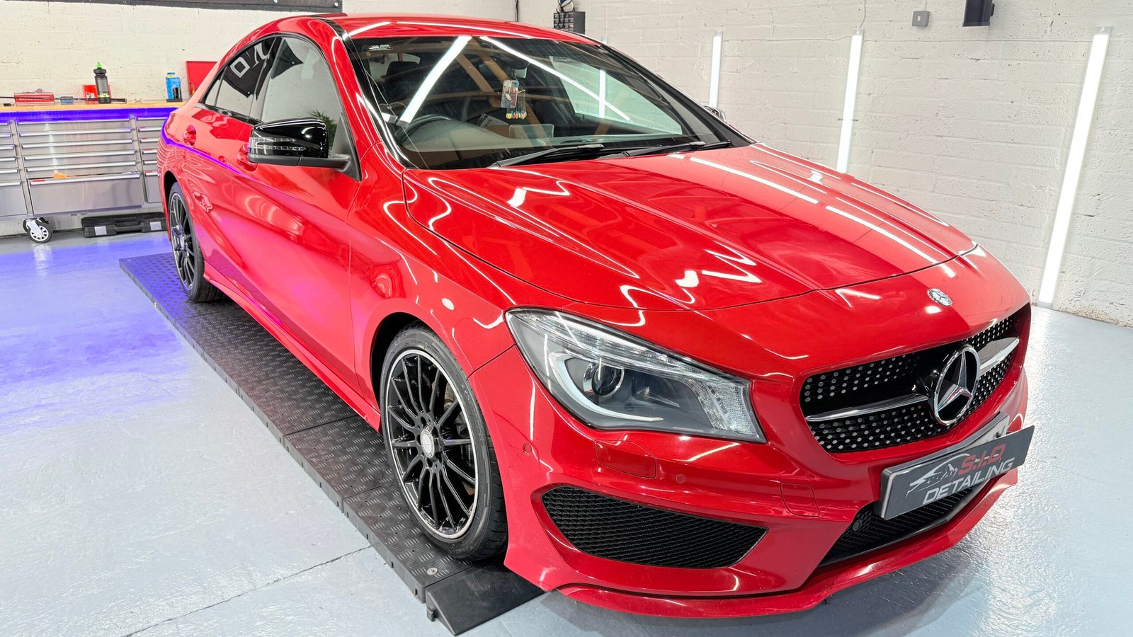 Mercedes-Benz CLA received a multi-stage machine polish to remove defects and restore a deep, reflective gloss. A premium synthetic wax was applied for lasting protection. Damaged window trims were repainted for a fresh look, and the interior underwent a deep clean, leaving every surface spotless and rejuvenated